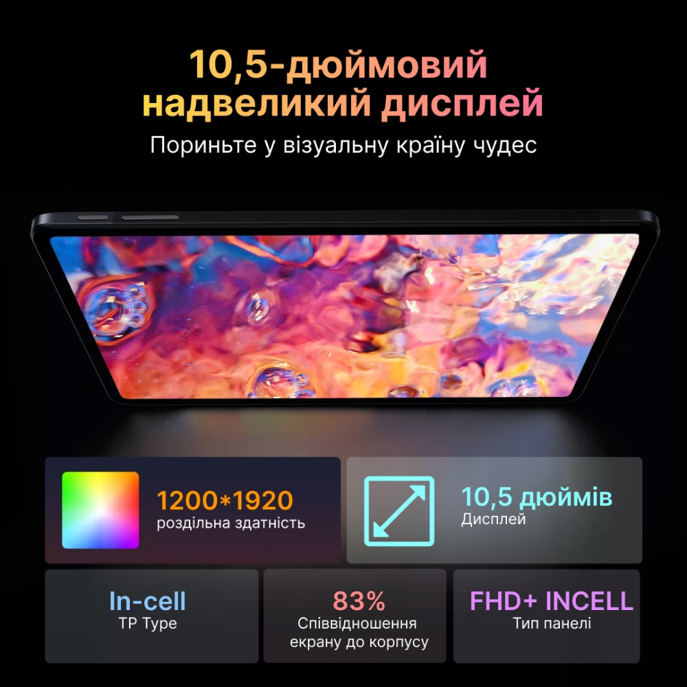 10,5-дюймовий FHD+ дисплей — неперевершена чіткість зображення та яскравість кольорів