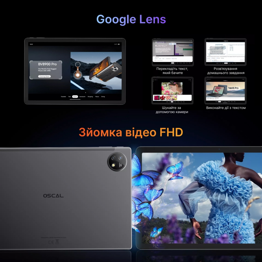 Завдяки інтеграції Google Lens, Oscal Pad 16 пропонує користувачам можливість швидкого пошуку, розпізнавання тексту та перекладу, що робить використання планшета ще більш інтуїтивним та зручним. Функція запису відео у форматі FHD дозволяє створювати високоякісний контен для публікацій у соціальних мережах.