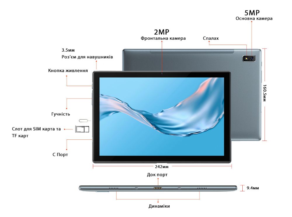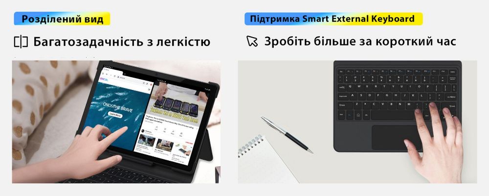 Док-порт дозволяє використовувати Pad 8 з клавіатурою, легко перетворюючи планшет на комп’ютер. Клавіатура — чудовий компаньйон для вашого планшета, який забезпечує комфорт для друку, має вбудований трекпад, регульований кут огляду та захист спереду та ззаду.