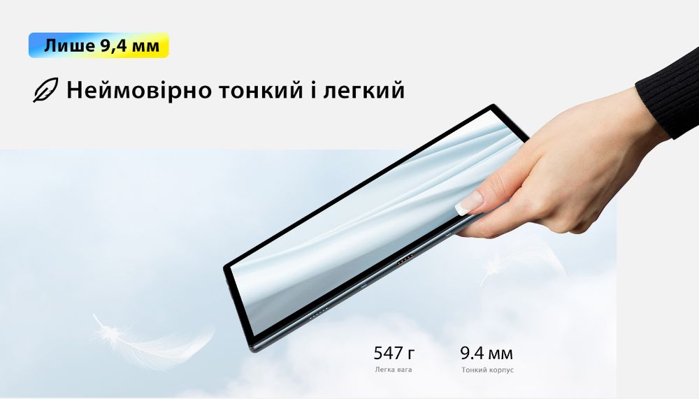 Вага Pad 8 до 500 г, а товщина до 9,4 мм. Він настільки легкий і тонкий, що його можна носити однією рукою. Ідеальний для розваг та навчання. Беріть з собою куди завгодно.