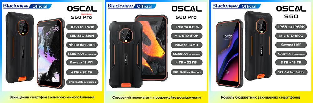 Цей телефон входить до лінійки захищених смартфонів бренду Oscal - крім нього, існують ще моделі S60 та S60pro. Вони також вартують вашої уваги і мають кілька беззаперечних переваг.
