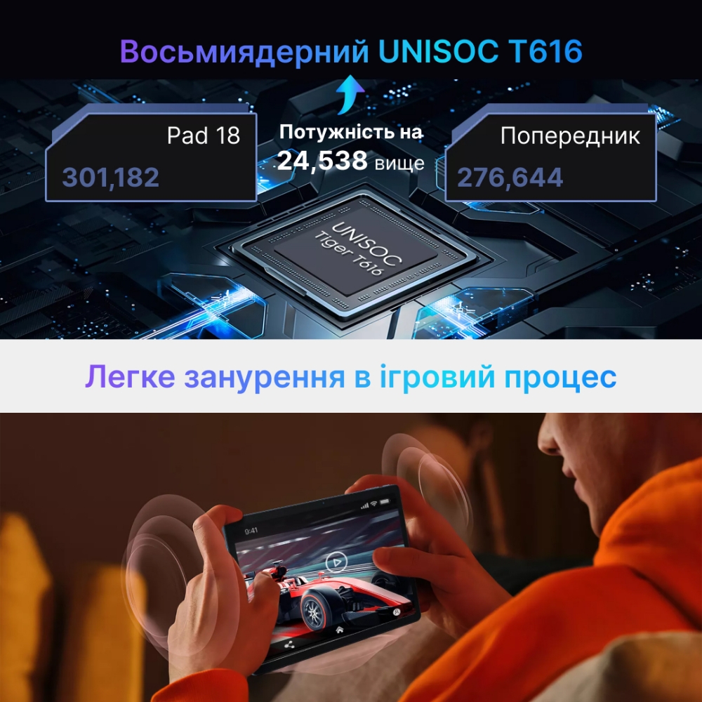 З 8-ядерним процесором UNISOC T616, Pad 18 забезпечує плавну роботу при використанні багатозадачних додатків та ігрових застосунків, забезпечуючи високу продуктивність у будь-яких умовах.