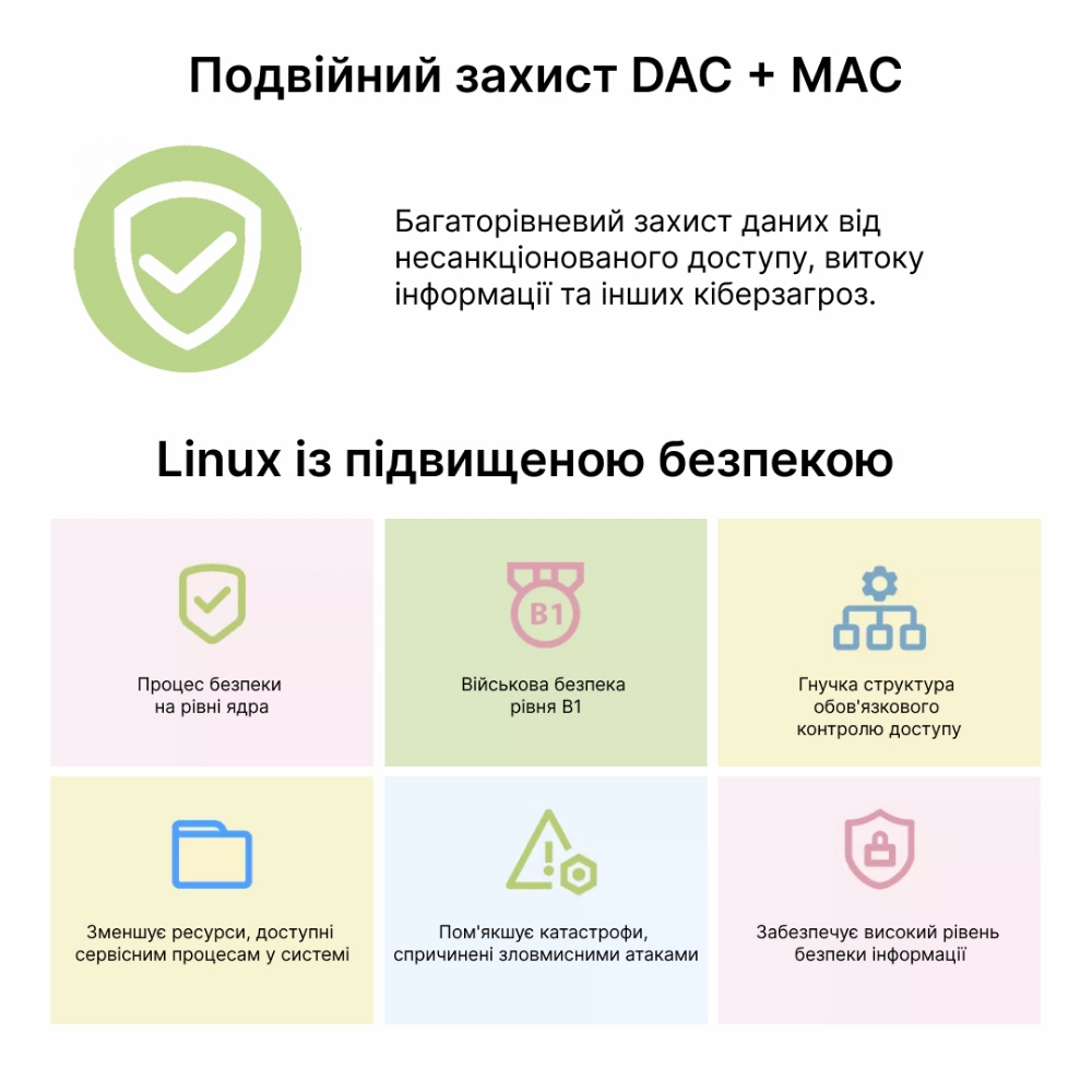 Pad 18 впроваджує передову систему безпеки, яка базується на подвійному захисті DAC (Discretionary Access Control) та MAC (Mandatory Access Control), розробленому Агентством національної безпеки США (NSA). DAC дозволяє користувачам керувати доступом до їхніх даних на рівні додатків, тоді як MAC доповнює це, дозволяючи системі встановлювати обмеження доступу до певних ресурсів. Це забезпечує багаторівневий захист даних від несанкціонованого доступу, витоку інформації та інших кіберзагроз.