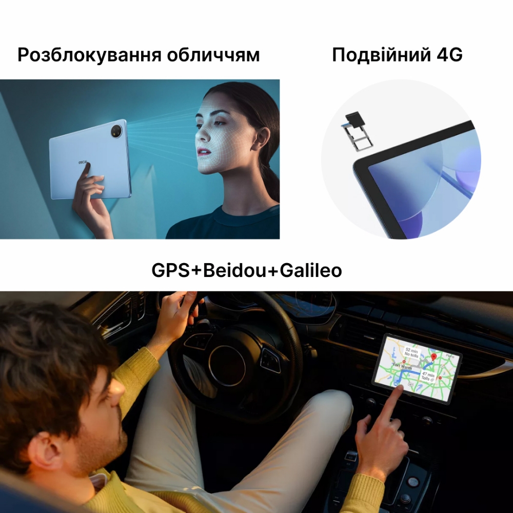 Pad 18 оснащений широким спектром зручних функцій, що розширюють його використання та забезпечують високий рівень зручності. З подвійним 4G LTE підтримкою, пристрій забезпечує надійне та швидке підключення до інтернету. Вбудовані слоти для SIM-карт дозволяють використовувати два номери одночасно, що ідеально підходить для професійних і особистих потреб. Інтегровані навігаційні системи GPS, Glonass, Beidou та Galileo забезпечують точне визначення місця розташування, а функція розблокування обличчям пропонує зручний та безпечний спосіб доступу до пристрою.