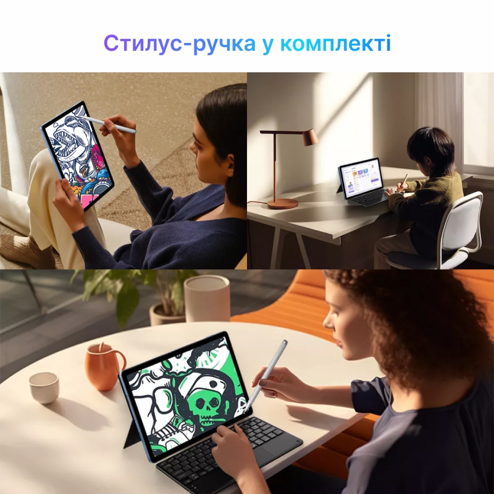 У комплекті з Pad 18 йде стилус, який ідеально підходить для миттєвого фіксування ідей, малювання, рукописних нотаток та навіть для навігації по інтерфейсу. Він забезпечує високу точність та чутливість, що робить його ідеальним інструментом для художників, дизайнерів та студентів.