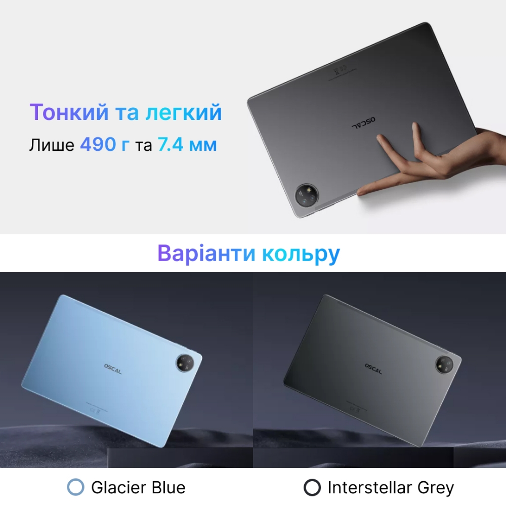 Планшет Oscal Pad 18 8/256GB 4G Dual Sim Interstellar Grey; 11" (1920х1200) IPS / Unisoc T616 / ОЗП 8 ГБ / 256 ГБ вбудованої + microSD до 1 ТБ / камера 13 Мп + 13 Мп / 4G (LTE) / Bluetooth, Wi-Fi / GPS, GLONASS, BeiDou, Galileo / Android 13.0 / 256.75x168.3x7.4 мм, 490 г / 8800 мАг / сірий