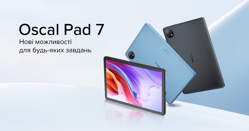 Планшет Oscal Pad 7 має відмінну комплектацію: планшет, чохол, захисне скло, зарядний пристрій, USB-кабель та документація (посібник/гарантія).