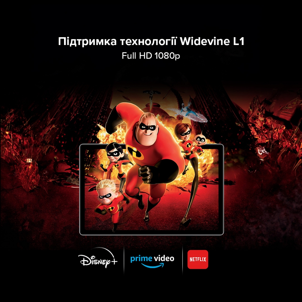 Відчуй максимальне задоволення під час перегляду оригінального кінематографічного відео у форматі Full HD 1080p. Планшет Pad 7 забезпечить передачу потокового відео з ліцензійних майданчиків Netflix, Amazon Prime Video, Disney+ та інших, для повного занурення у світ кіно, незалежно від місця використання!