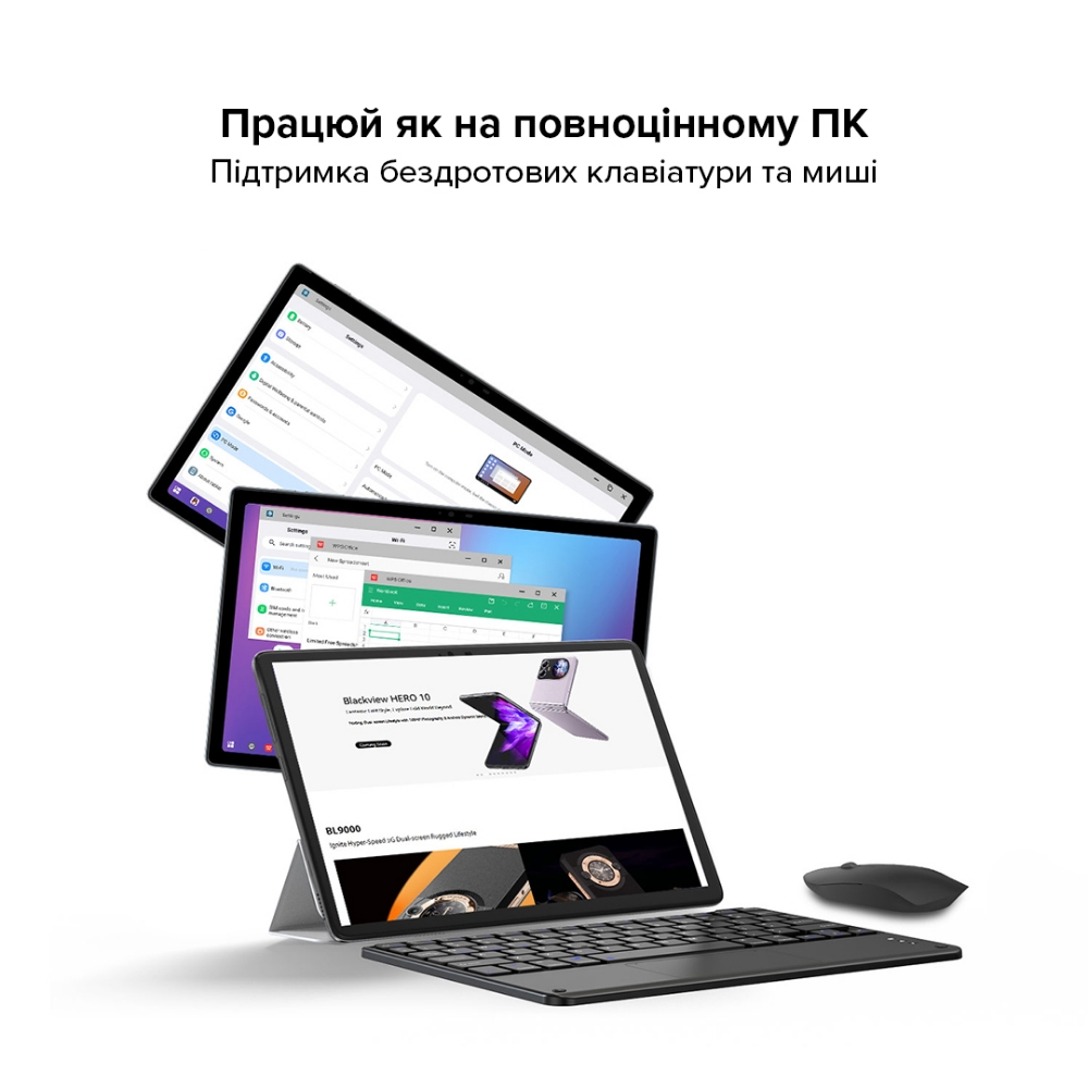 Пристрiй підтримує підключення бездротових клавіатури та миші, що робить з Oscal Pad 7 ефективного помічника для навчання та роботи. Перетворюй планшет на міні-ноутбук та використовуй його можливості на повну – прокачуй свою максимальну продуктивність у будь-який час та в будь-якому місці.