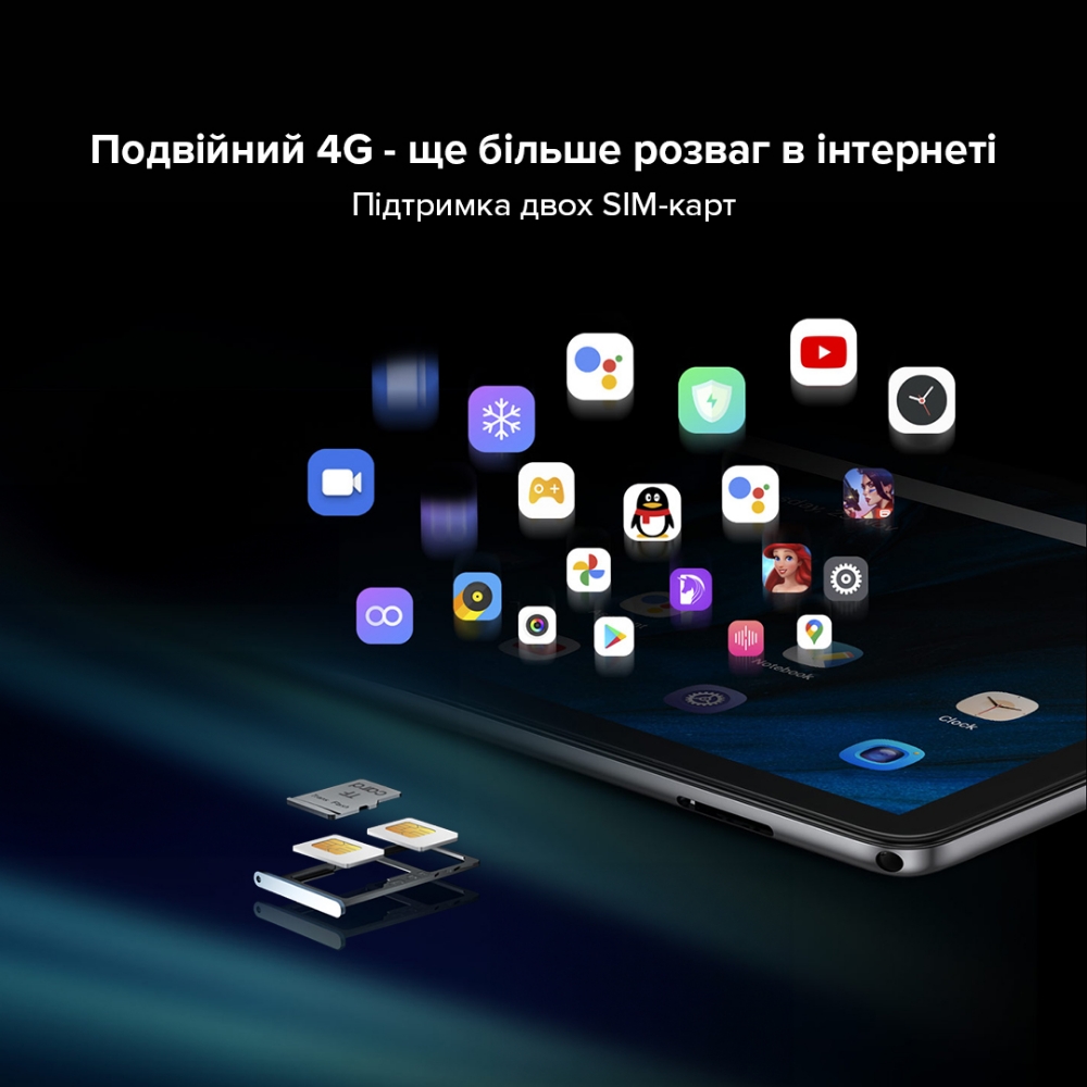 Планшет оснащений продуктивним процесором Unisoc Tiger T606, що має 8 незалежних ядер із частотою 1.6 ГГц, та вбудовану графіку Mali-G57. Підтримує сучасні протоколи, забезпечує стабільну роботу у режимі багатозадачності.
