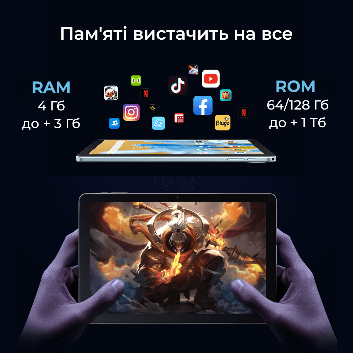 Oscal Pad 70 представлений у двох варіантах – 64 та 128 Гб. Якщо цього місця не вистачить для зберігання всіх ваших файлів, ви можете розширити внутрішній простір до 1 ТБ, використовуючи TF-карту.