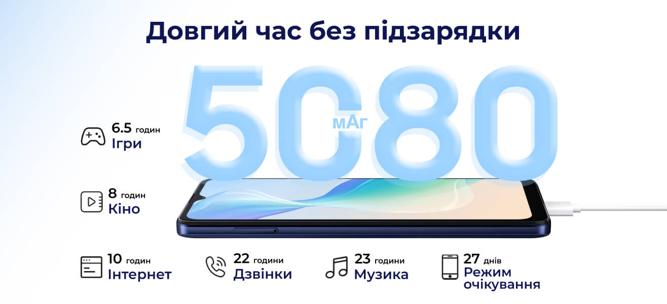 Oscal C30 Pro створений для того, щоб його використовували. З ним хочеться взаємодіяти і немає часу на часту підзарядку. Так, вона й не буде потрібна. Акумулятора на 5080 мАч вистачить на 6,5 годин ігор, 8 годин перегляду відео, 10 годин веб-серфінгу, 22 години розмов, 23 години прослуховування музики, 27 днів у режимі очікування. Високоінтелектуальний алгоритм енергоефективності значно скорочує час підзарядки.