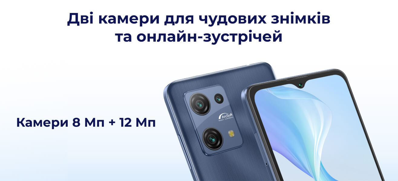 Основна 12-мегапіксельна камера, що працює на базі програмного забезпечення ArcSoft робить кожен знімок чітким і деталізованим. Фронтальна камера на 8 МП підходить для здійснення відеодзвінків, онлайн-навчання.