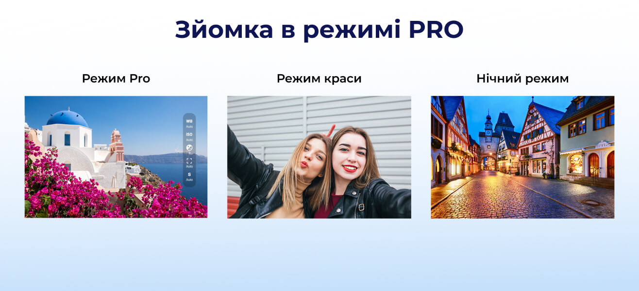 Режим краси зробить ваші селфі привабливішими, при цьому обробка виходить натуральною і лише підкреслить вашу природну привабливість. Режим Pro перетворює смартфон на професійну камеру. При зйомці з увімкненим нічним режимом ваші знімки вийдуть яскравими, з високою деталізацією навіть при поганому освітленні.