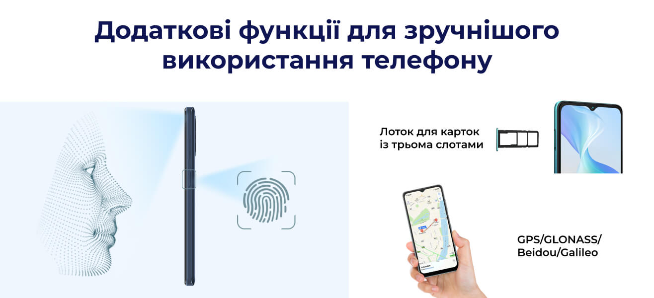Увімкніть розпізнавання обличчя, і зможете розблокувати телефон лише одним кліпанням. У вас є 3 слоти для сім-карт, тому вам не доведеться вибирати між другою сім-картою і TF-карткою. Ви можете використовувати для навігації GPS, Глонасс, Beidou, Galileo.