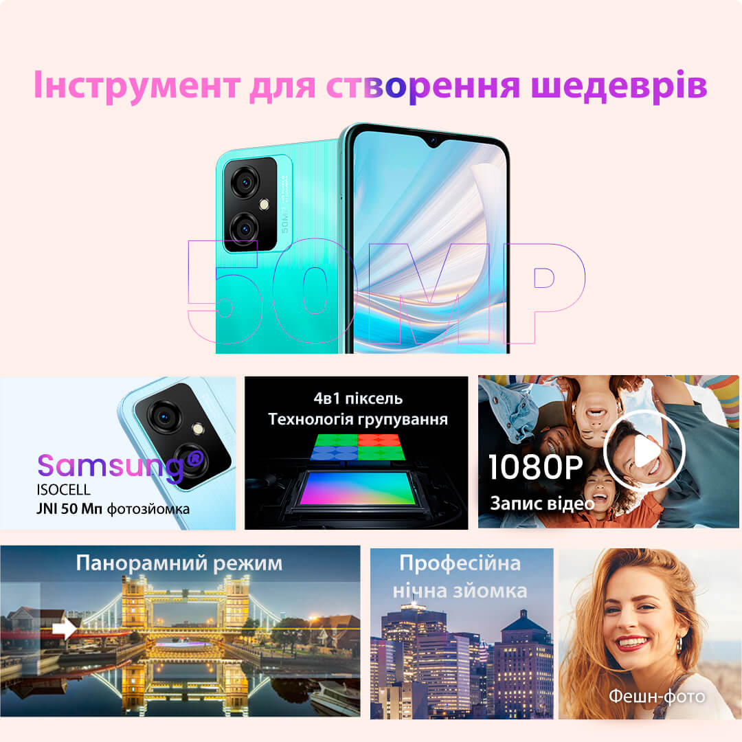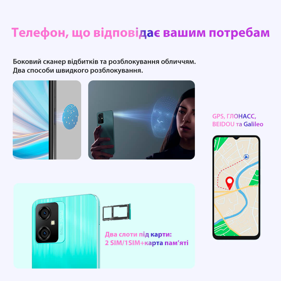 Oscal C70 – це сучасний смартфон із HD+ екраном 6,6”. На великому дисплеї зручно дивитися фільми та грати в ігри. Акумулятор на 5180 мАг дарує можливість не відволікатися на зарядку під час використання гаджета. Камери 50 Мп та 8 Мп складуть конкуренцію навіть професійному фотоапарату. Восьмиядерний процесор та оперативна пам'ять 6 Гб з можливістю розширення гарантують плавну роботу пристрою навіть у режимі багатозадачності.