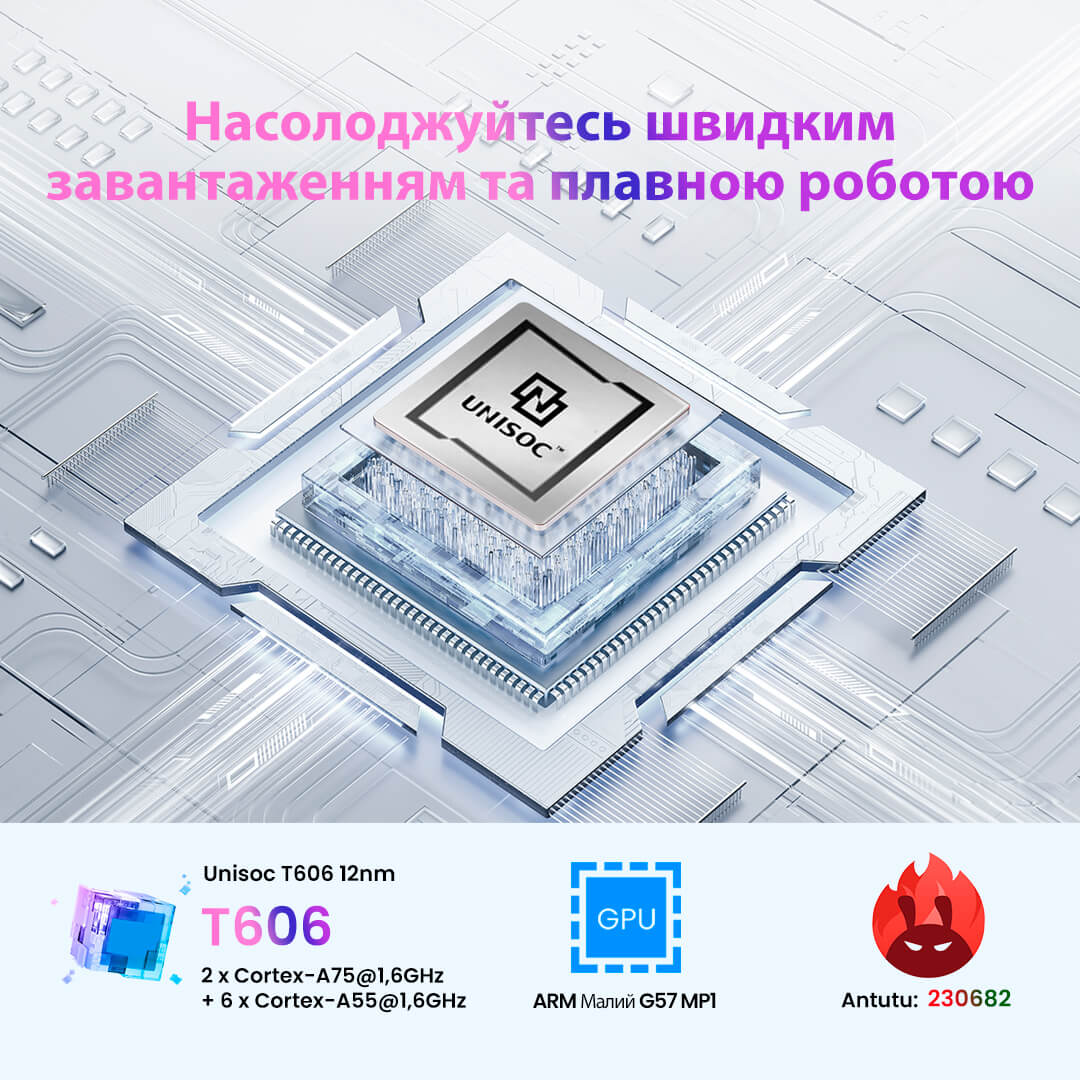 У телефоні Oscal C70 встановлений 8-ядерний процесор Unisoc T606. Він підтримує швидке завантаження, складну графіку, має високу продуктивність, при цьому він не витрачає багато енергії. Завдяки йому навіть при роботі в декількох додатках одночасно смартфон не зависатиме.