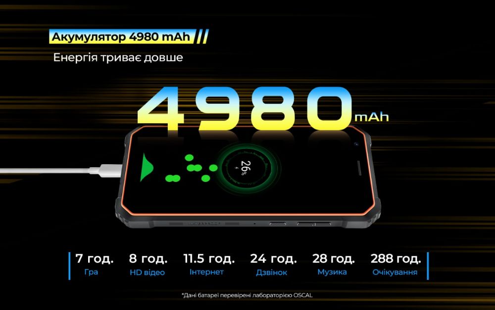Заряджайте менше користуйтеся довше. Акумулятор місткістю 4980 мАг з вбудованим інтелектуальним керуванням, ефективно запобігає вичерпанню заряду, навіть при інтенсивному використанні.