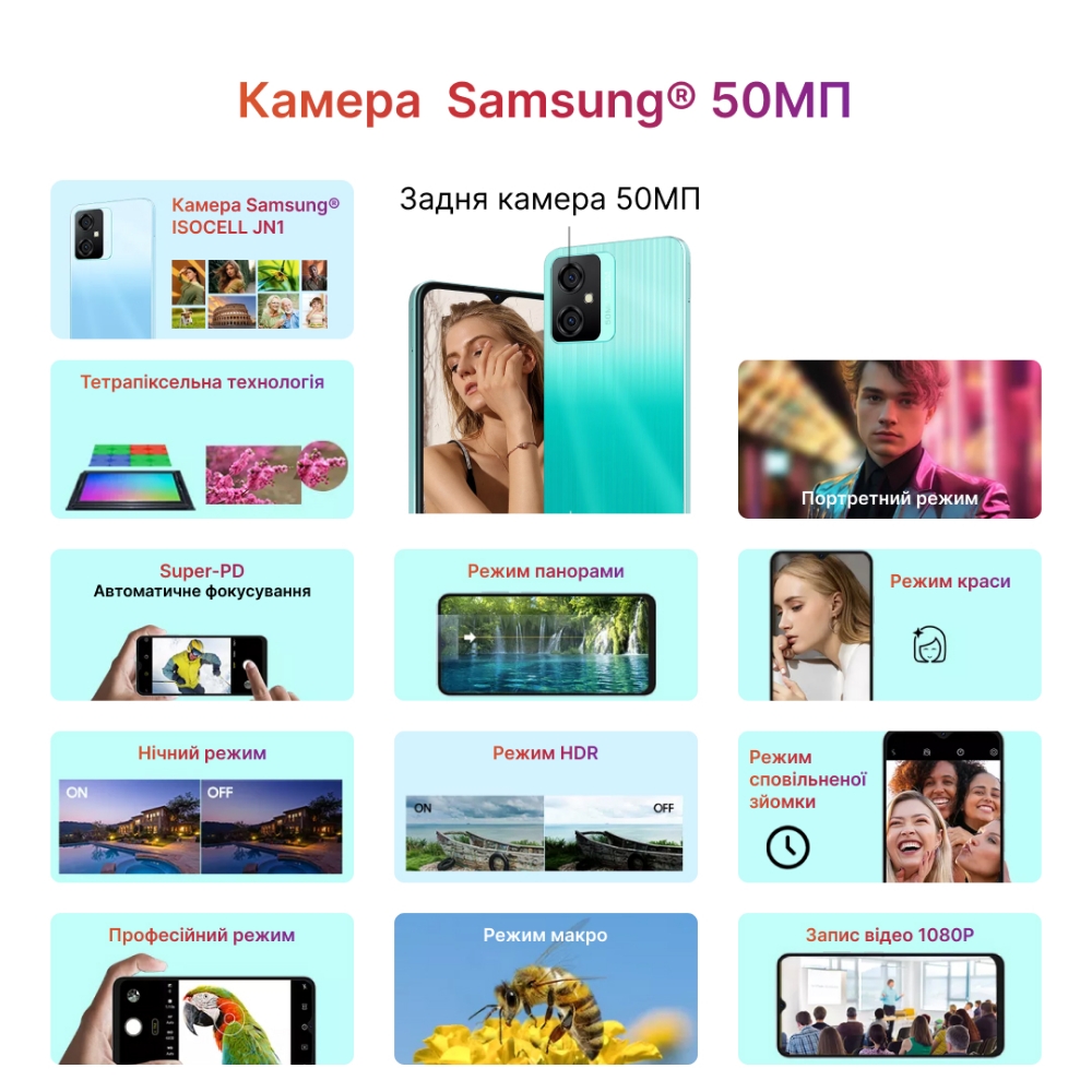 Основна камера 50 Мп від Samsung ISOCELL та багатофункціональні режими, включаючи Pro та Нічний режим, перетворюють TIGER 10 на мрію фотографа. Фронтальна 8 Мп камера гарантує, що ваші селфі будуть ідеальними. Цей смартфон не просто закарбовує моменти, він робить їх незабутніми.