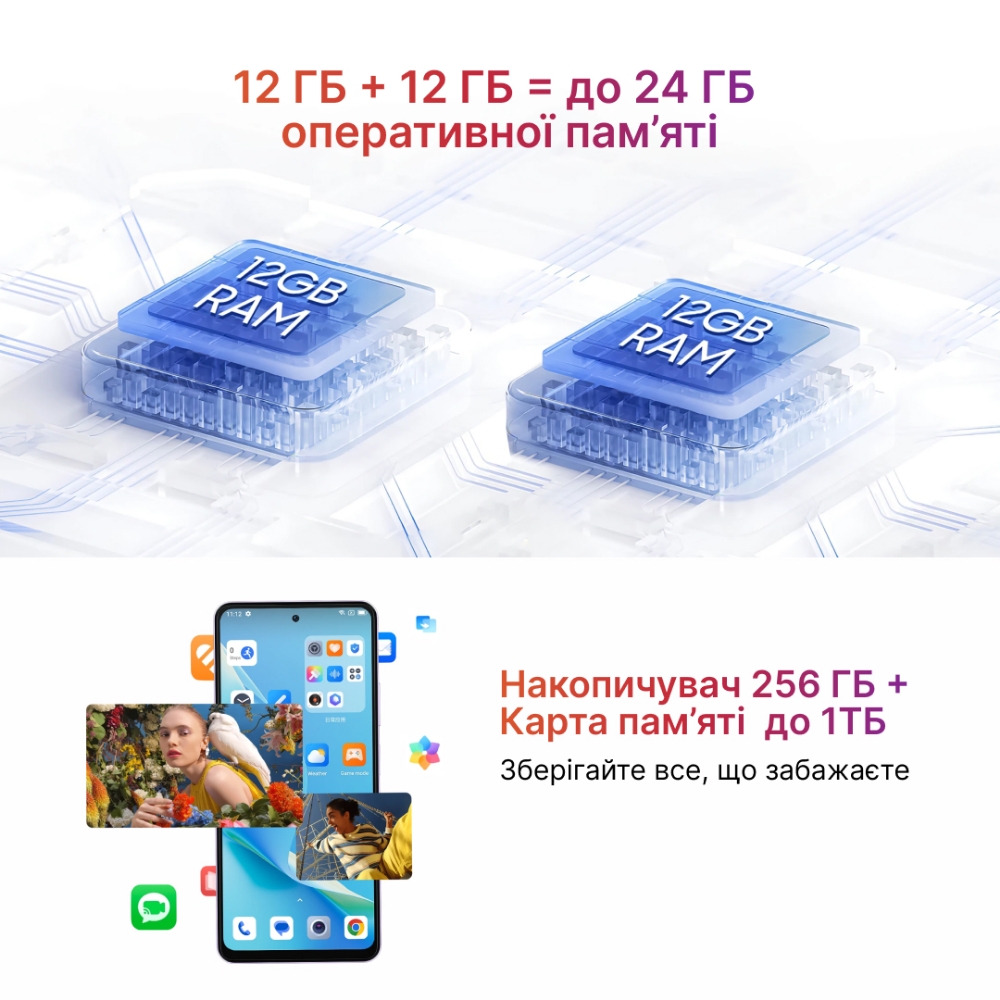 Oscal TIGER 12 має 256 ГБ вбудованої пам'яті з можливістю розширення до 1 ТБ за допомогою TF-карти, а також 12 ГБ оперативної пам'яті з можливістю розширення до 24 ГБ. Така конфігурація дозволяє легко зберігати великі обсяги даних і забезпечує швидку обробку для максимальної ефективності.