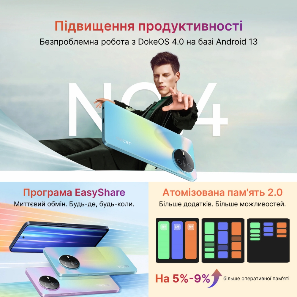 Працюючи на базі DokeOS 4.0 та Android 13, Oscal TIGER 12 пропонує інтуїтивний інтерфейс та сучасні функції. EasyShare забезпечує швидкий обмін файлами, а Atomized Memory 2.0 оптимізує використання оперативної пам'яті, забезпечуючи плавну роботу системи.