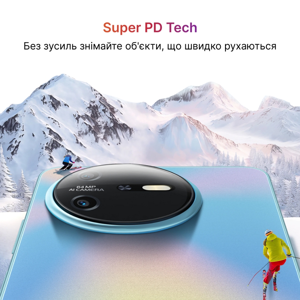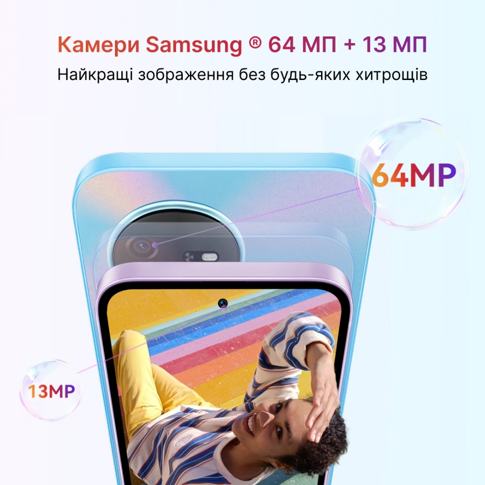 Головна камера на 64 Мп з технологією Samsung ISOCELL GW3 та фронтальна камера на 13 Мп Samsung ISOCELL 3L6 забезпечують високу якість зображень та відео. Камери оснащені розширеними функціями для захоплення кристально чистих фотографій та відео навіть у складних умовах освітлення.